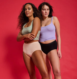 Klassíska línan er hvers dags uppáhald. Þessi lína er fullkominn grunnur í fataskápinn þinn til að líða vel, hreinni og ferskri alla daga. Þær veita vernd frá óvæntum lekum þegar þú átt síst von á þeim eða viðbótarvörn þegar þú ert á blæðingum eða við líkamsrækt þegar grindarbotninn er ekki upp á sitt besta. Taktu þátt í umhverfisvernd með því að hætt að nota einnota dömubindi og taktu blæðinga/þvagleka nærbuxum opnum örmum. Allar konur ættu að geta fundið snið sem hentar sér í klassísku línunni.